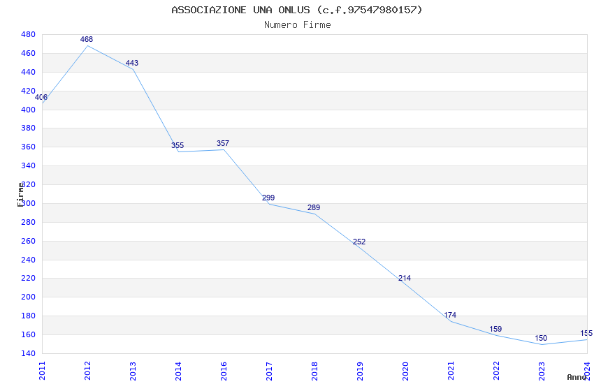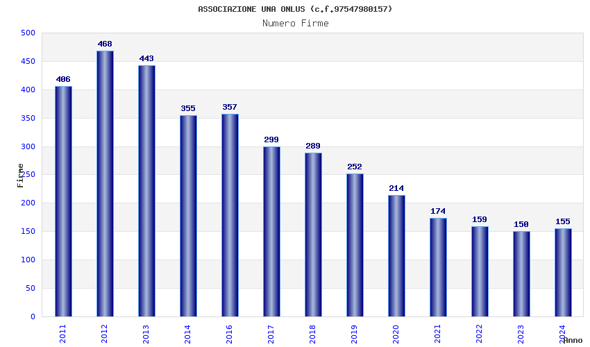 | Anno | Firme | Importi | Media | Naz. | Reg. | Prov. | Comu. |
