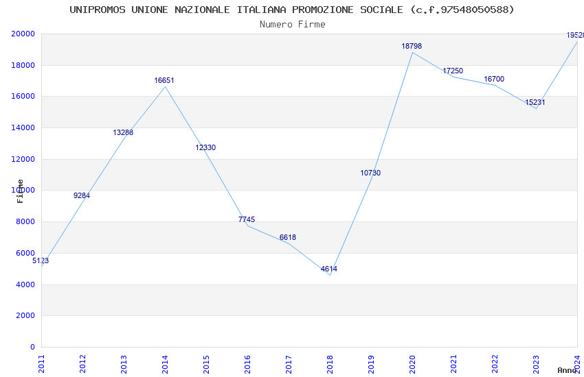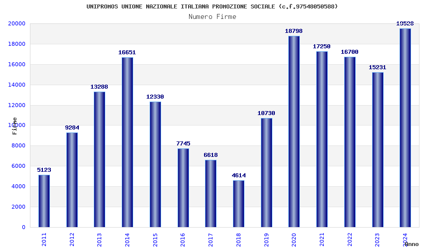 | Anno | Firme | Importi | Media | Naz. | Reg. | Prov. | Comu. |