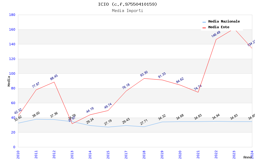 | Anno | Firme | Importi | Media | Naz. | Reg. | Prov. | Comu. |