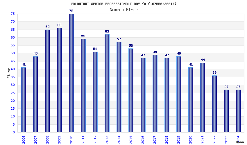 | Anno | Firme | Importi | Media | Naz. | Reg. | Prov. | Comu. |