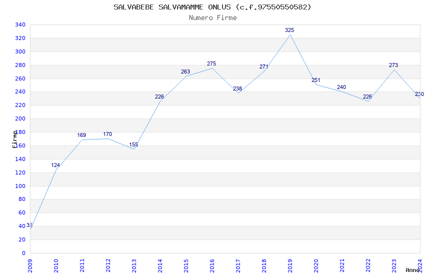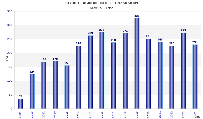 | Anno | Firme | Importi | Media | Naz. | Reg. | Prov. | Comu. |
