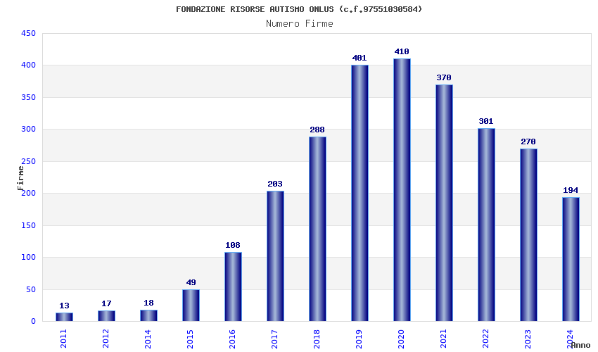 | Anno | Firme | Importi | Media | Naz. | Reg. | Prov. | Comu. |