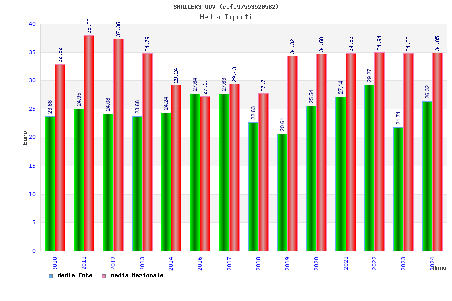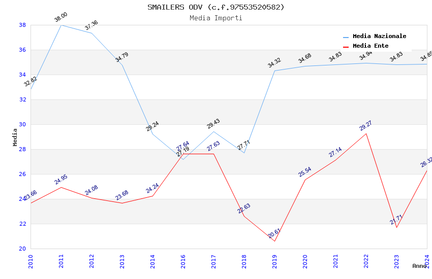 | Anno | Firme | Importi | Media | Naz. | Reg. | Prov. | Comu. |