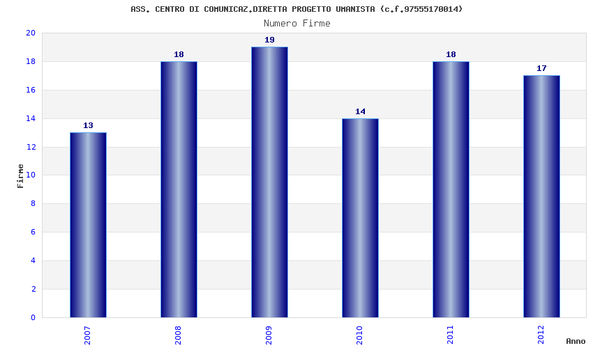 | Anno | Firme | Importi | Media | Naz. | Reg. | Prov. | Comu. |