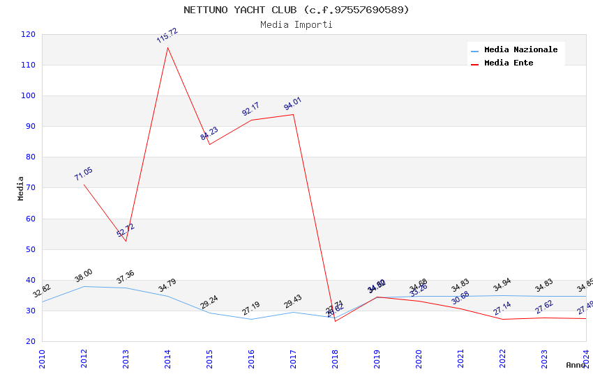 | Anno | Firme | Importi | Media | Naz. | Reg. | Prov. | Comu. |