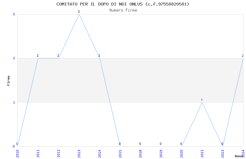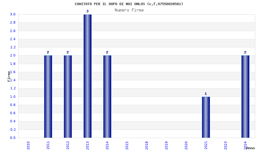 | Anno | Firme | Importi | Media | Naz. | Reg. | Prov. | Comu. |