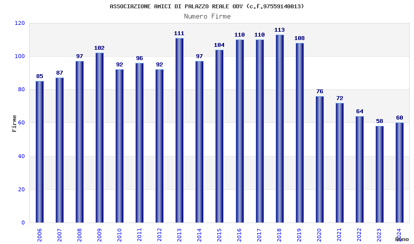 | Anno | Firme | Importi | Media | Naz. | Reg. | Prov. | Comu. |