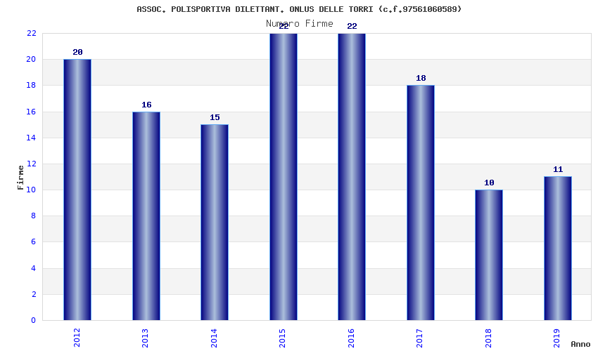 | Anno | Firme | Importi | Media | Naz. | Reg. | Prov. | Comu. |