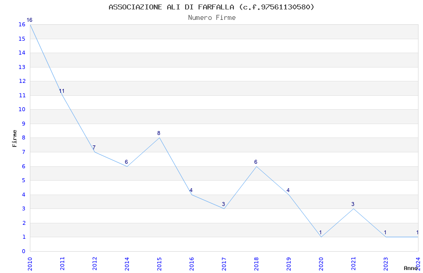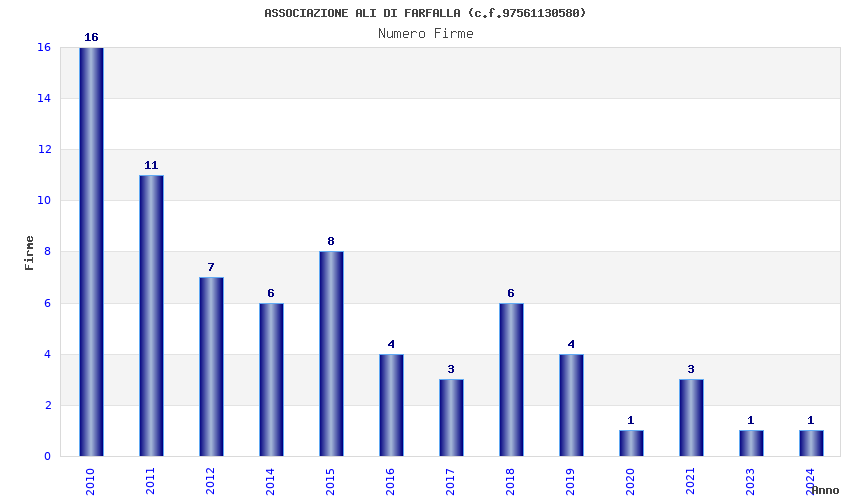 | Anno | Firme | Importi | Media | Naz. | Reg. | Prov. | Comu. |