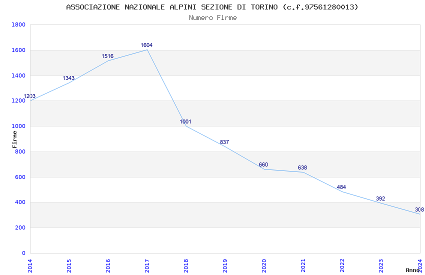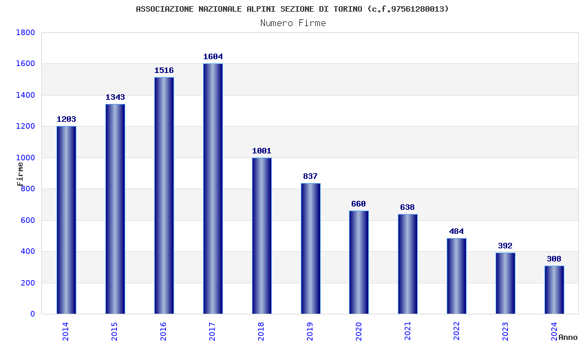 | Anno | Firme | Importi | Media | Naz. | Reg. | Prov. | Comu. |