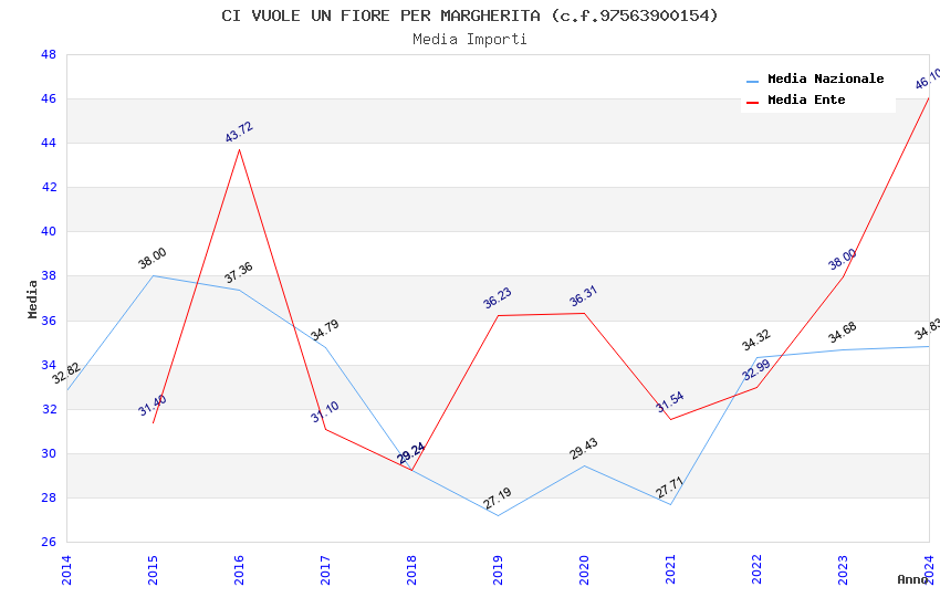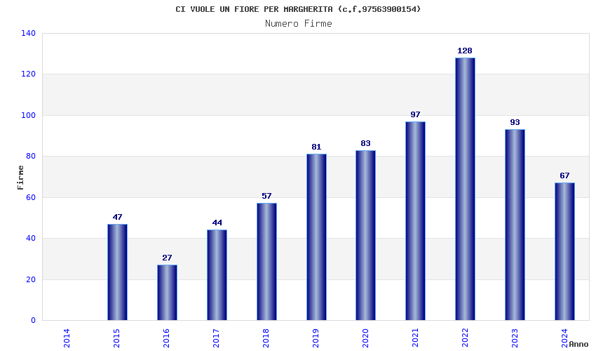 | Anno | Firme | Importi | Media | Naz. | Reg. | Prov. | Comu. |