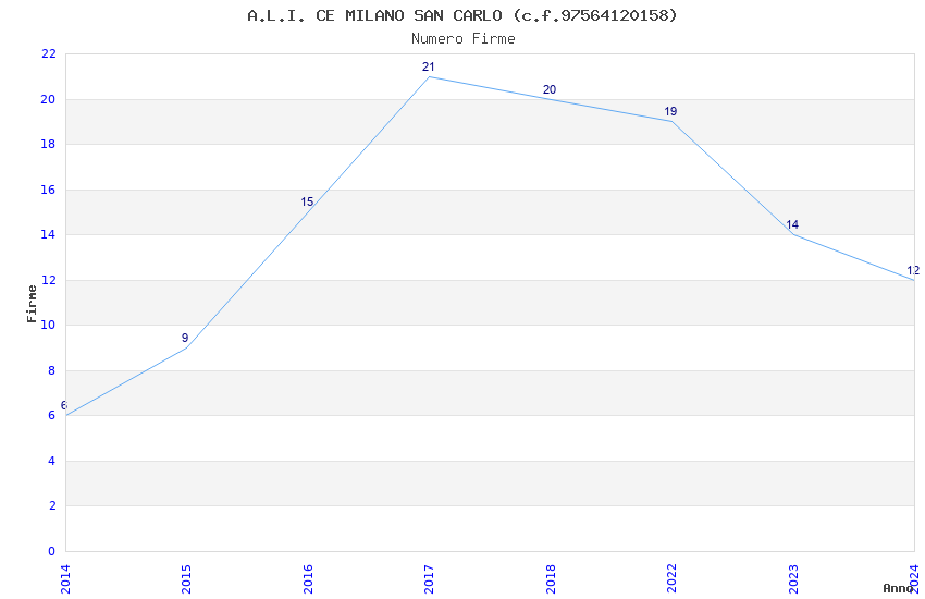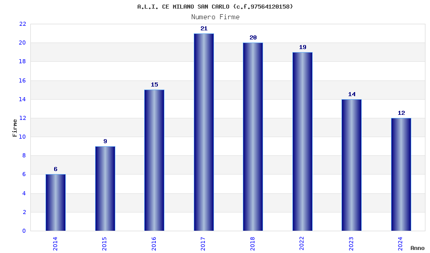 | Anno | Firme | Importi | Media | Naz. | Reg. | Prov. | Comu. |