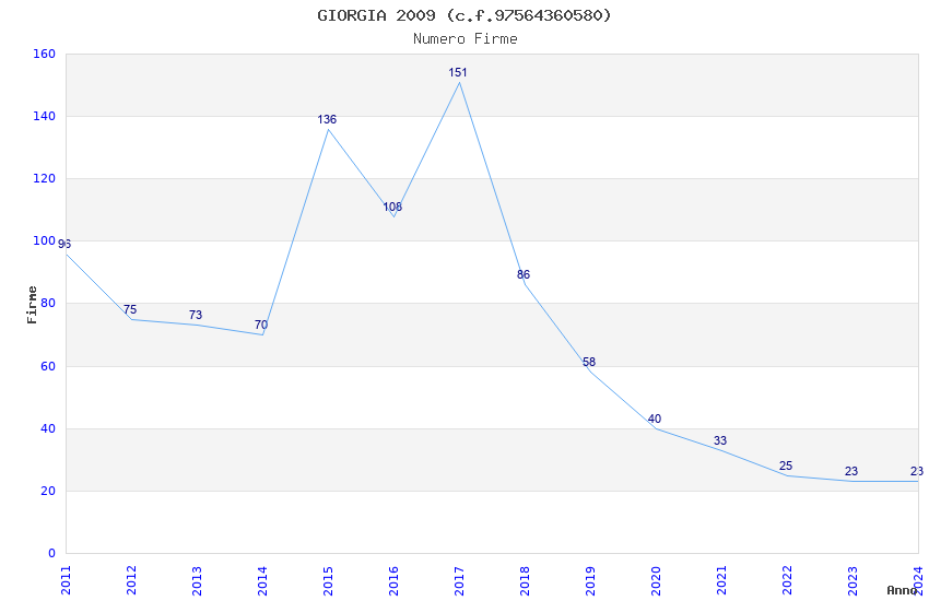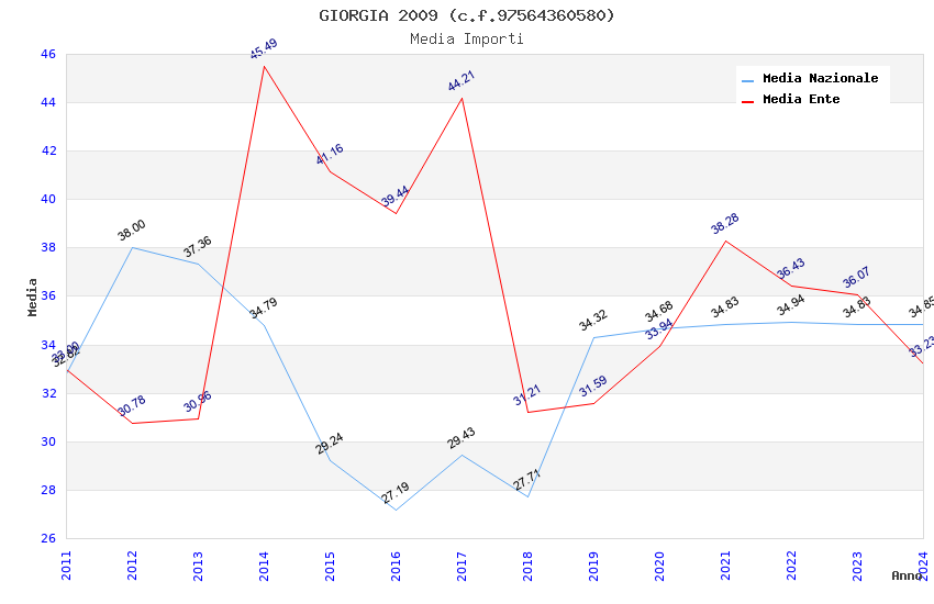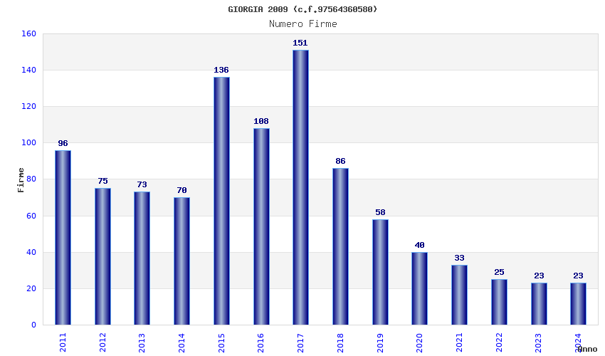 | Anno | Firme | Importi | Media | Naz. | Reg. | Prov. | Comu. |