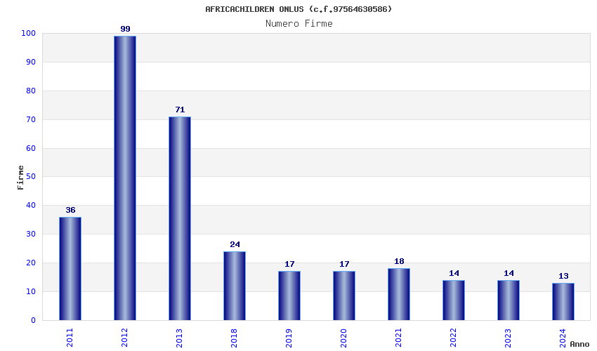 | Anno | Firme | Importi | Media | Naz. | Reg. | Prov. | Comu. |