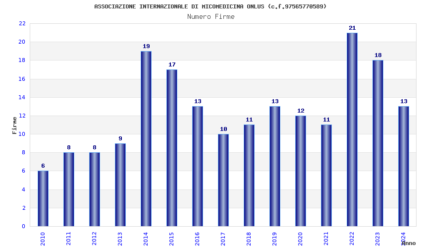 | Anno | Firme | Importi | Media | Naz. | Reg. | Prov. | Comu. |