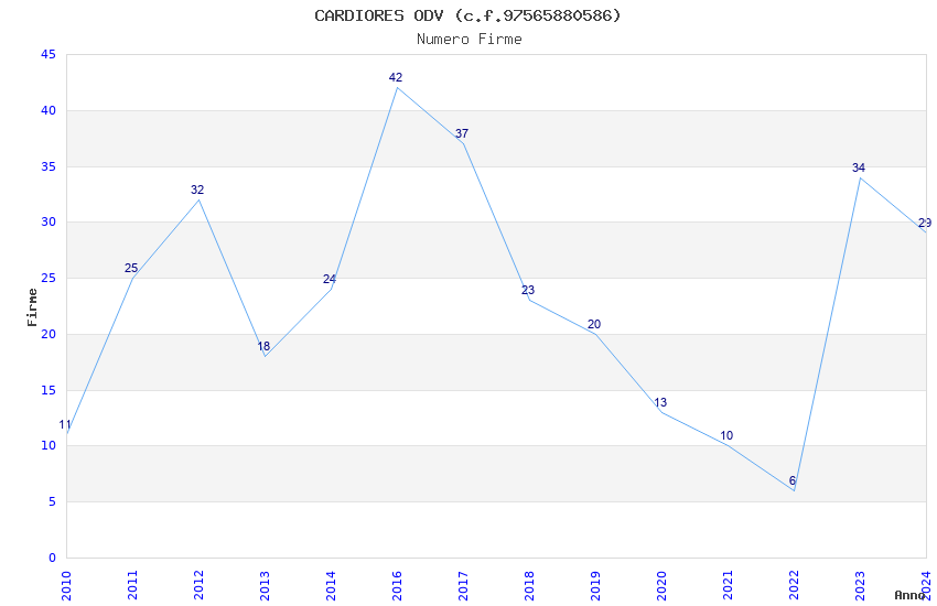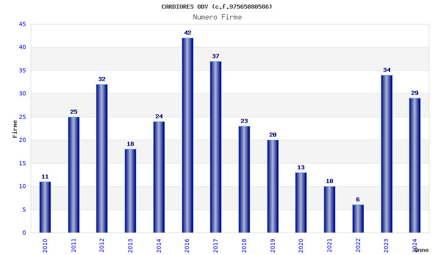 | Anno | Firme | Importi | Media | Naz. | Reg. | Prov. | Comu. |