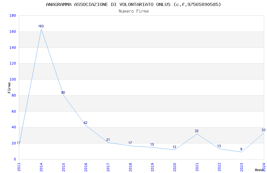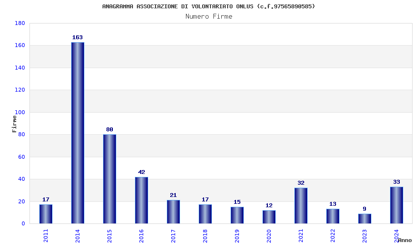 | Anno | Firme | Importi | Media | Naz. | Reg. | Prov. | Comu. |