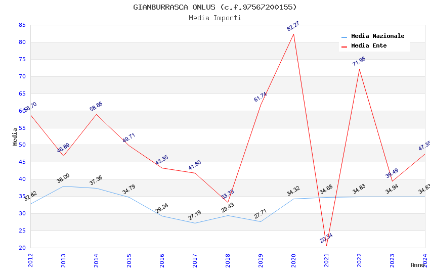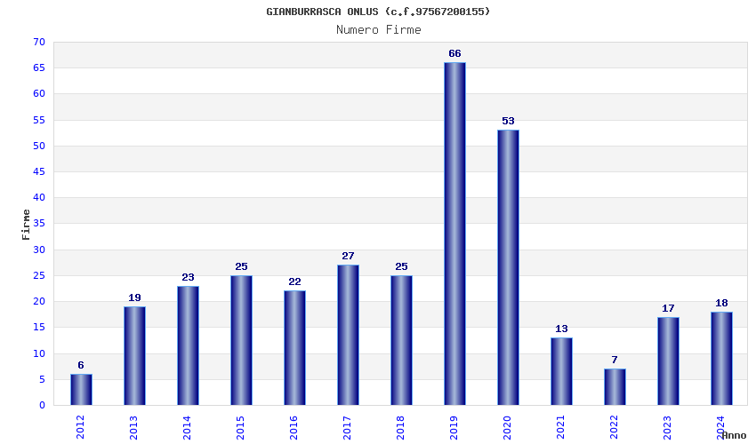 | Anno | Firme | Importi | Media | Naz. | Reg. | Prov. | Comu. |