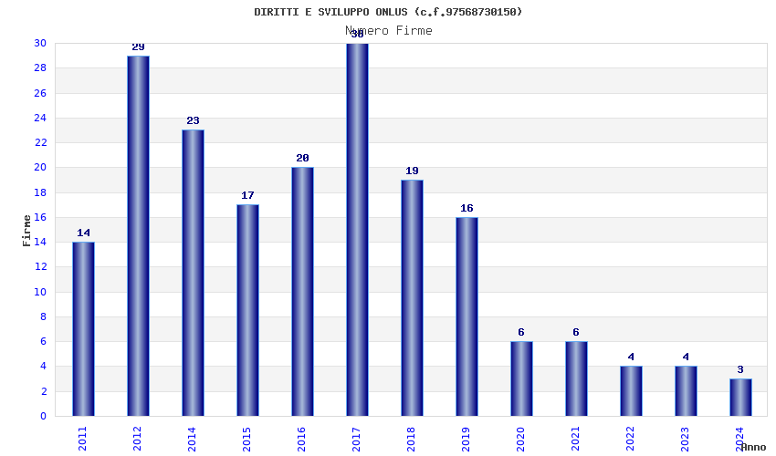 | Anno | Firme | Importi | Media | Naz. | Reg. | Prov. | Comu. |