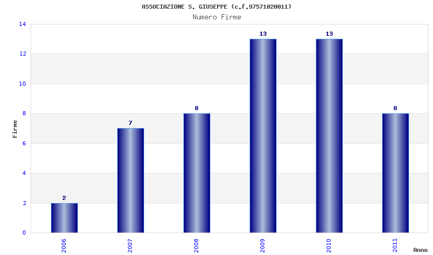 | Anno | Firme | Importi | Media | Naz. | Reg. | Prov. | Comu. |