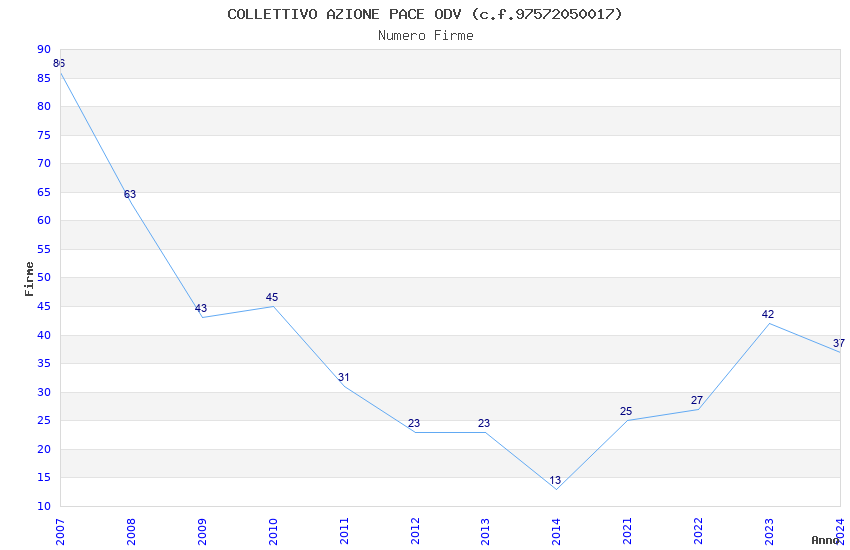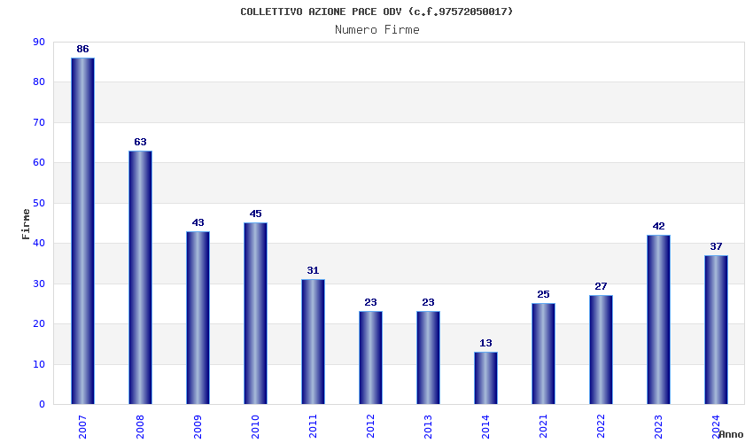 | Anno | Firme | Importi | Media | Naz. | Reg. | Prov. | Comu. |