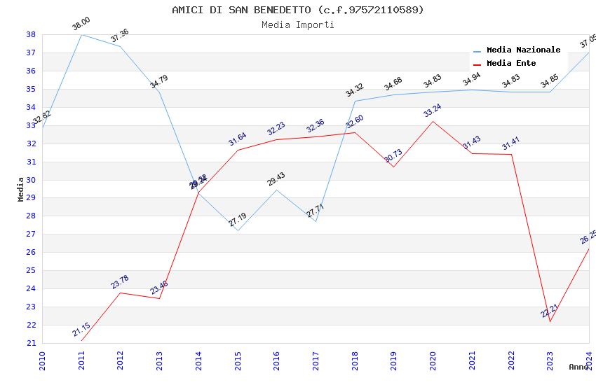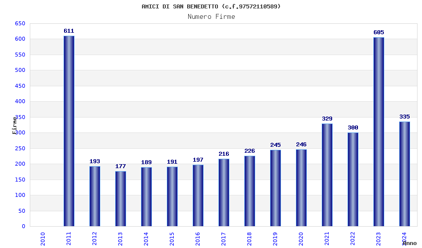 | Anno | Firme | Importi | Media | Naz. | Reg. | Prov. | Comu. |