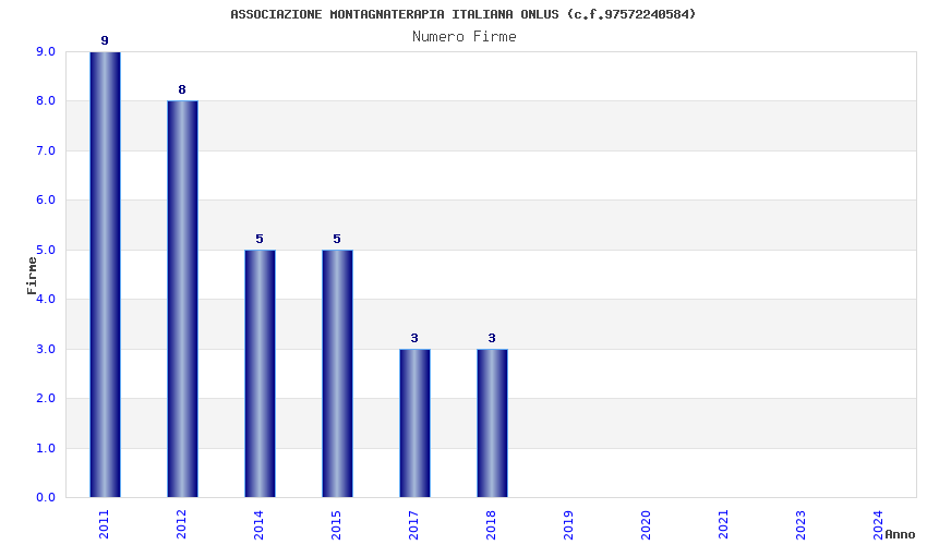 | Anno | Firme | Importi | Media | Naz. | Reg. | Prov. | Comu. |