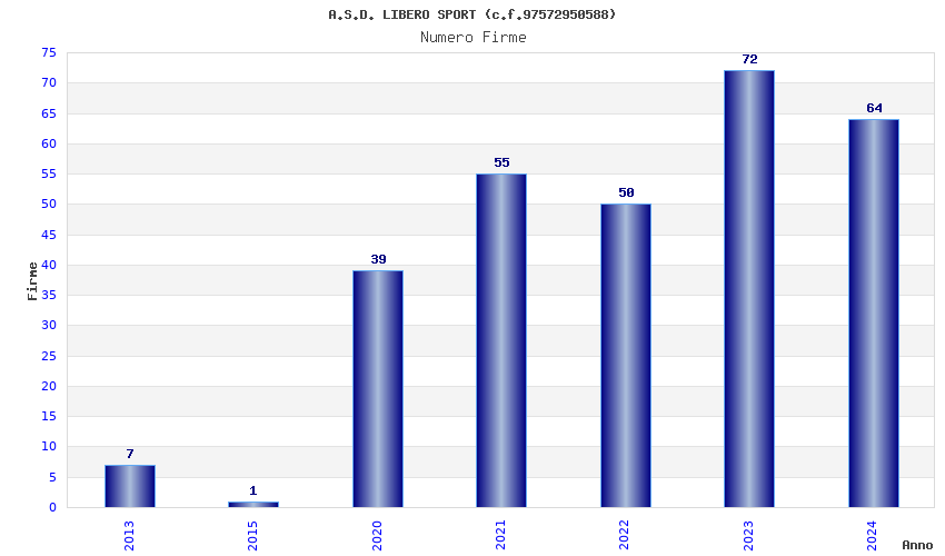 | Anno | Firme | Importi | Media | Naz. | Reg. | Prov. | Comu. |