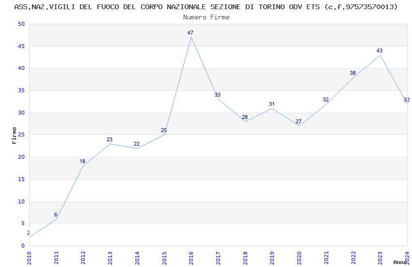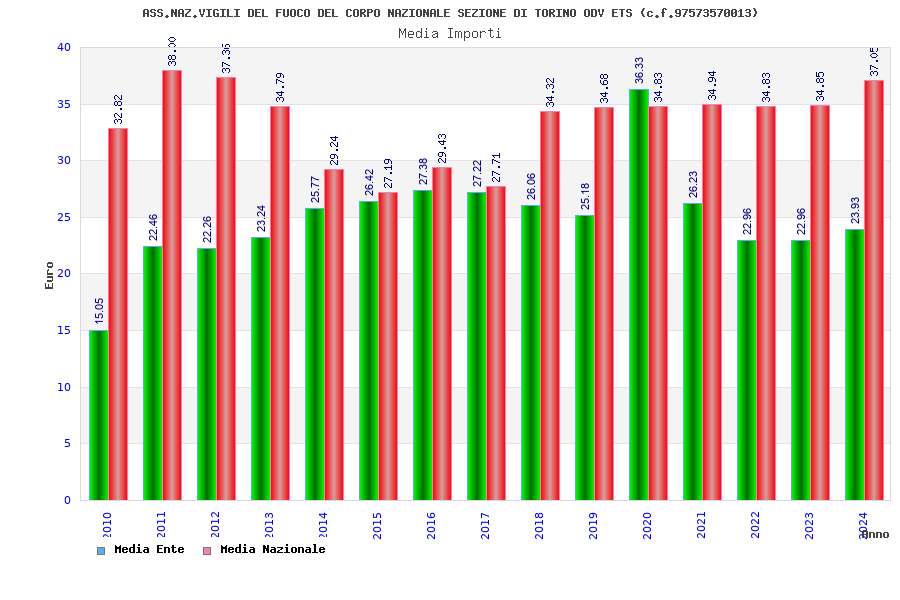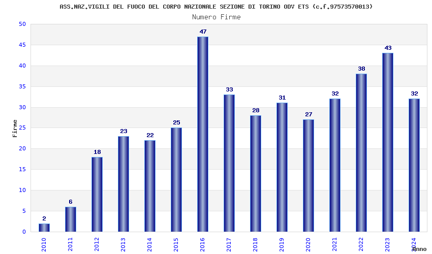 | Anno | Firme | Importi | Media | Naz. | Reg. | Prov. | Comu. |