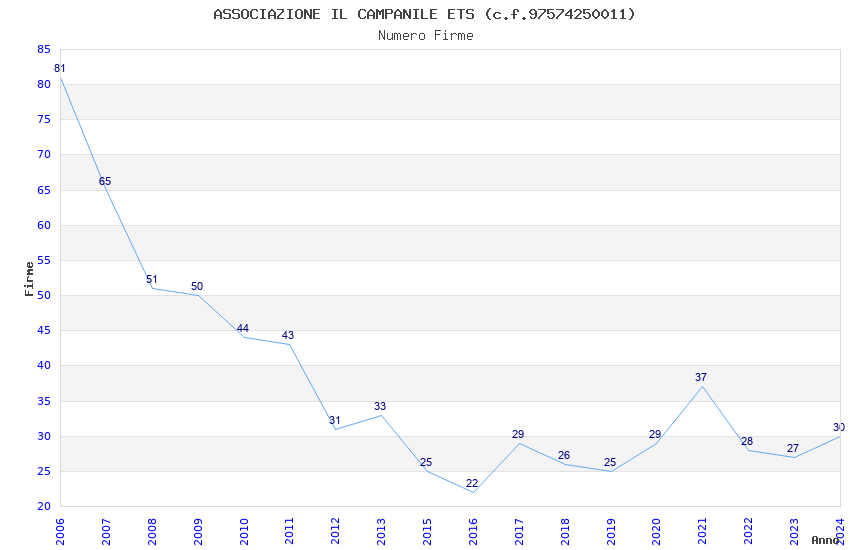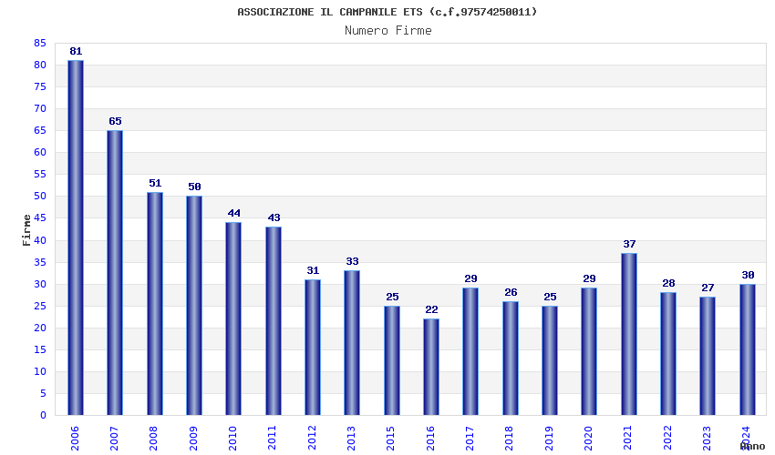 | Anno | Firme | Importi | Media | Naz. | Reg. | Prov. | Comu. |