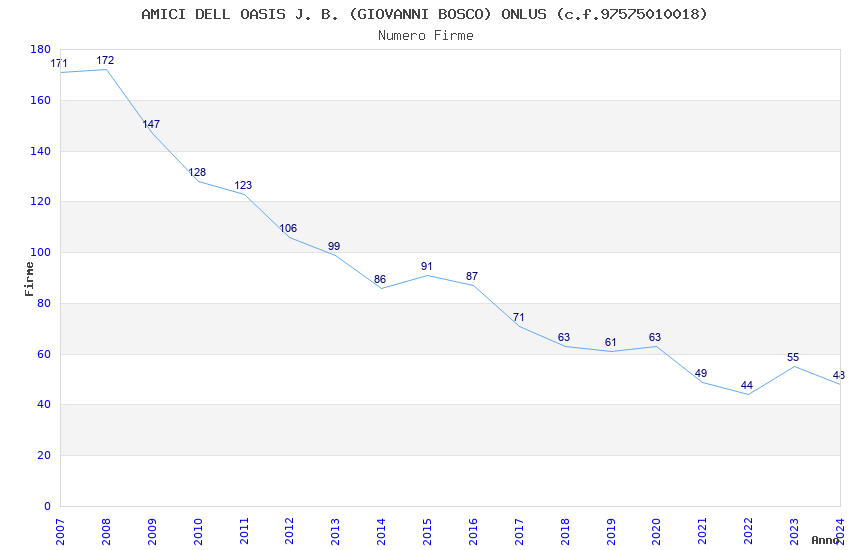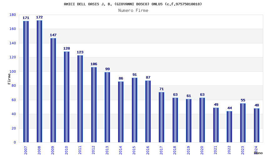 | Anno | Firme | Importi | Media | Naz. | Reg. | Prov. | Comu. |