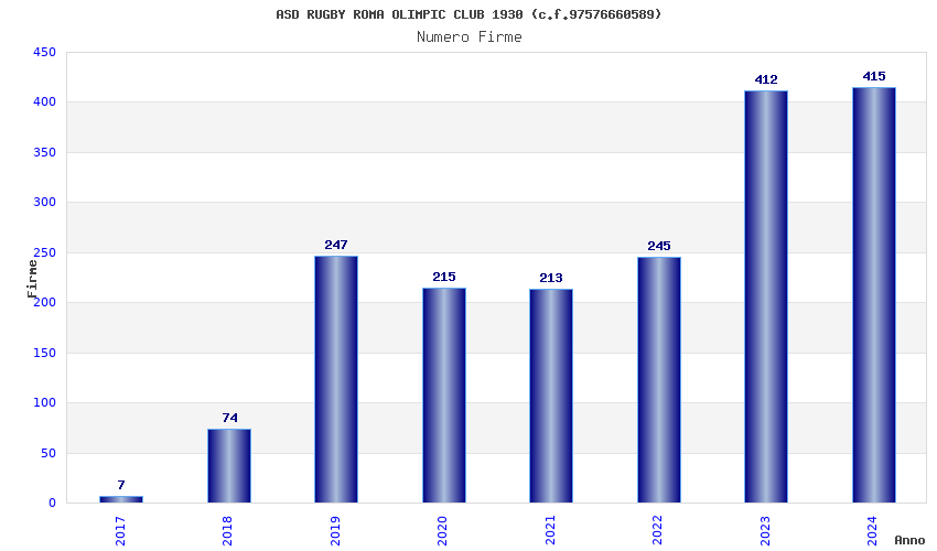 | Anno | Firme | Importi | Media | Naz. | Reg. | Prov. | Comu. |