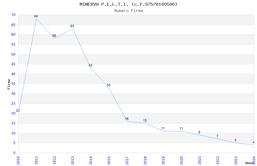 | Anno | Firme | Importi | Media | Naz. | Reg. | Prov. | Comu. |