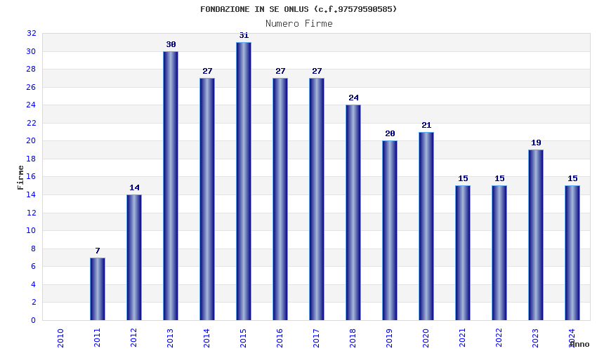 | Anno | Firme | Importi | Media | Naz. | Reg. | Prov. | Comu. |