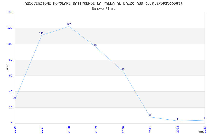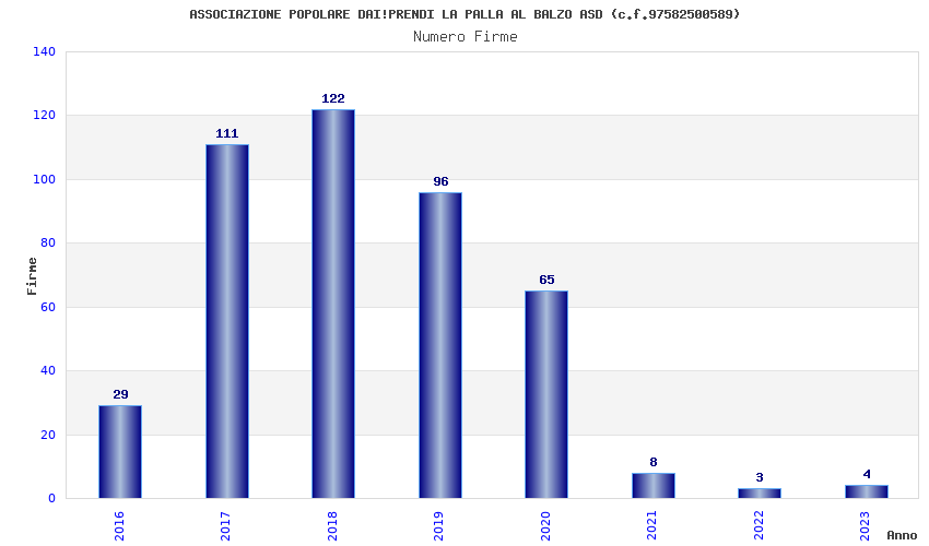 | Anno | Firme | Importi | Media | Naz. | Reg. | Prov. | Comu. |