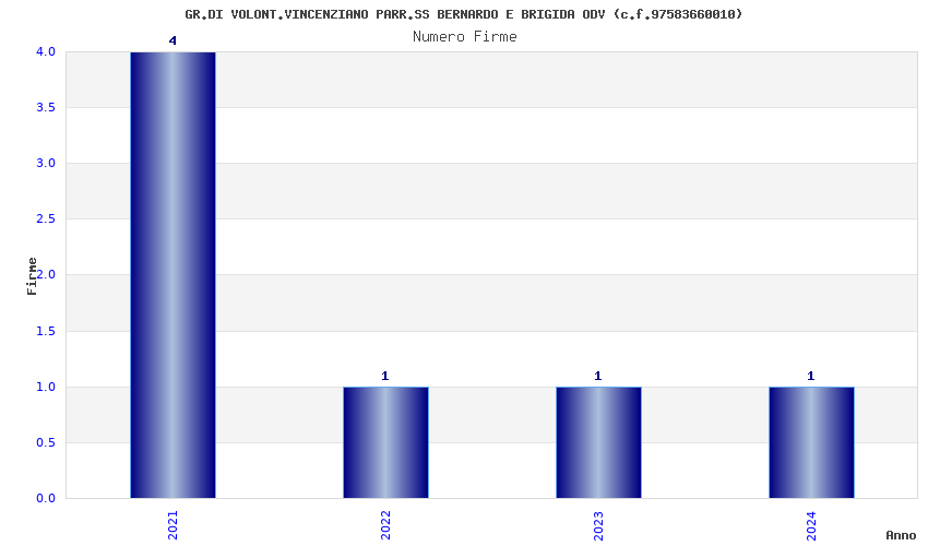 | Anno | Firme | Importi | Media | Naz. | Reg. | Prov. | Comu. |