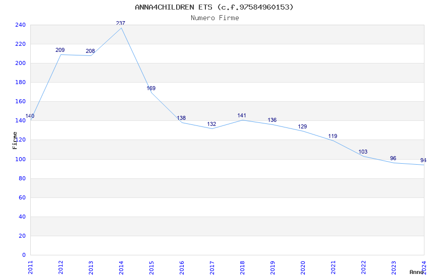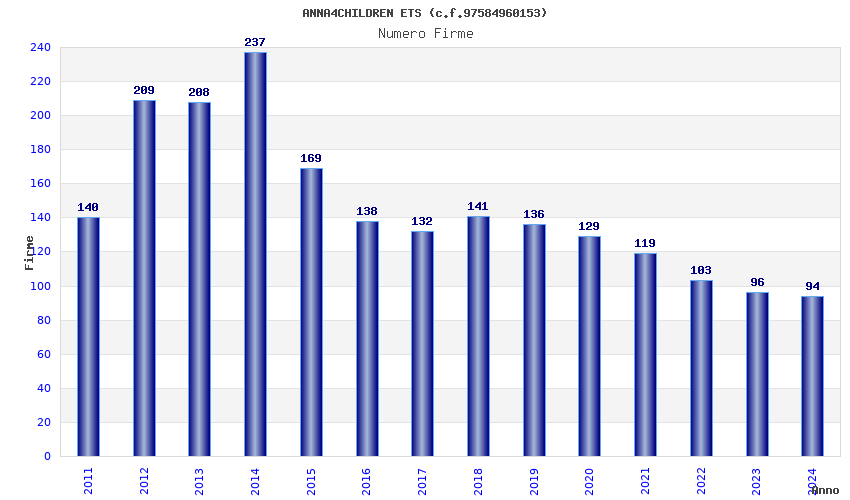 | Anno | Firme | Importi | Media | Naz. | Reg. | Prov. | Comu. |