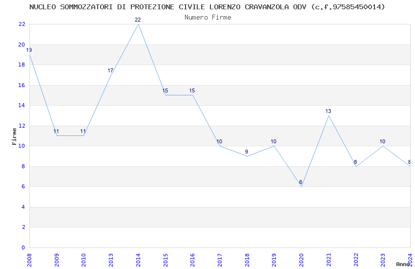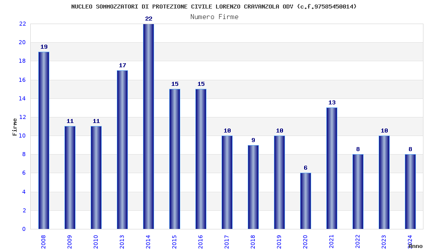| Anno | Firme | Importi | Media | Naz. | Reg. | Prov. | Comu. |