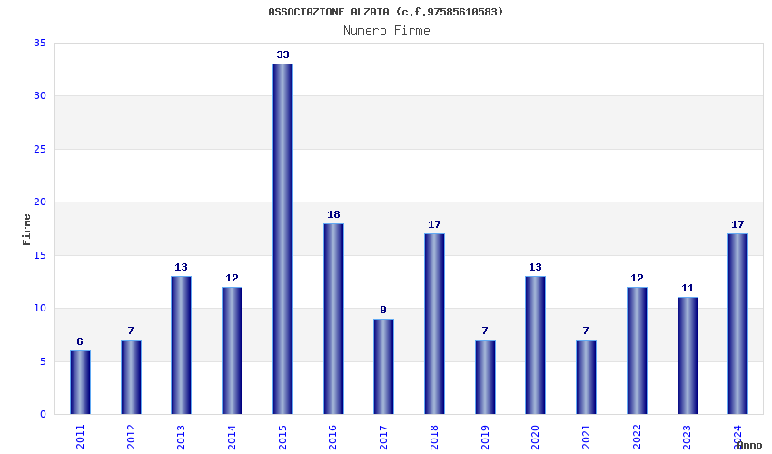 | 2015 | 33 | 848,08 | 25,70 | 33.549 | 2.867 | 2.330 | 16 |
