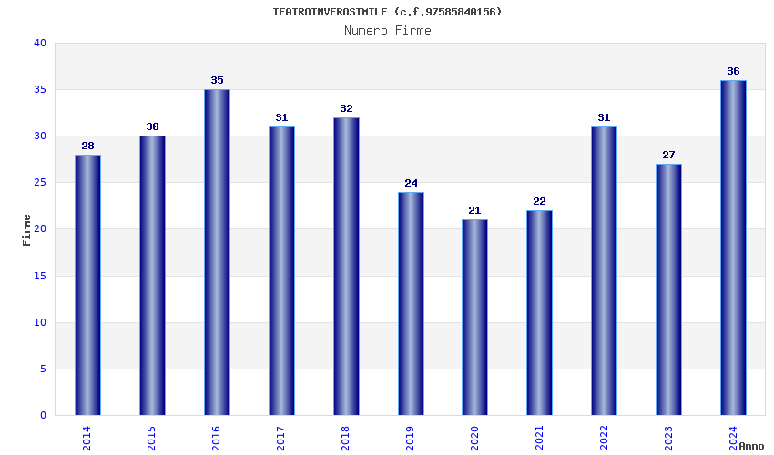 | Anno | Firme | Importi | Media | Naz. | Reg. | Prov. | Comu. |