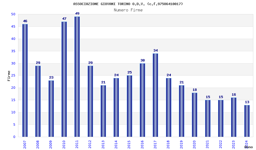 | Anno | Firme | Importi | Media | Naz. | Reg. | Prov. | Comu. |
