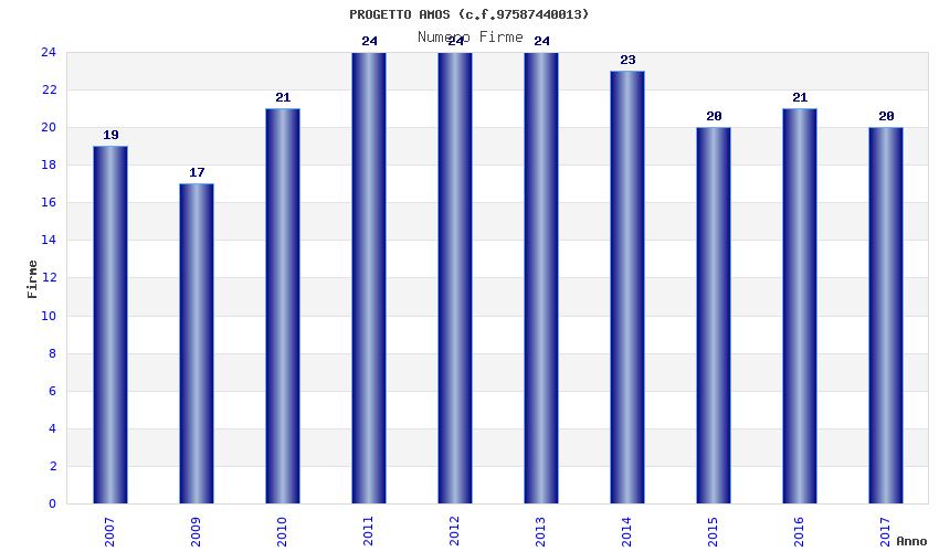 | Anno | Firme | Importi | Media | Naz. | Reg. | Prov. | Comu. |