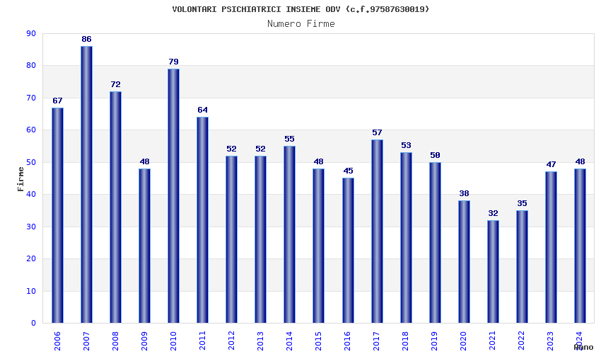 | Anno | Firme | Importi | Media | Naz. | Reg. | Prov. | Comu. |