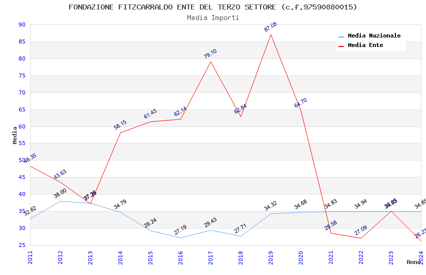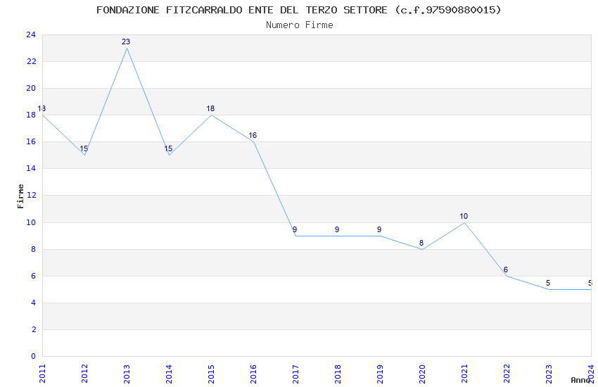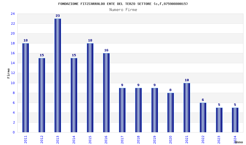 | Anno | Firme | Importi | Media | Naz. | Reg. | Prov. | Comu. |
