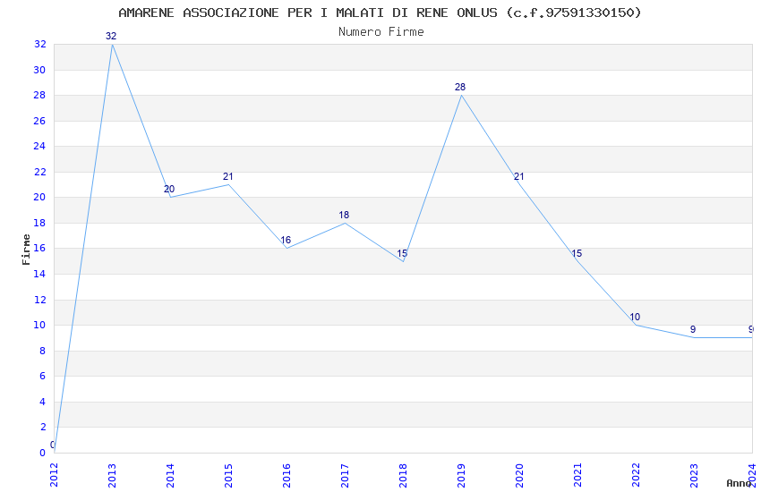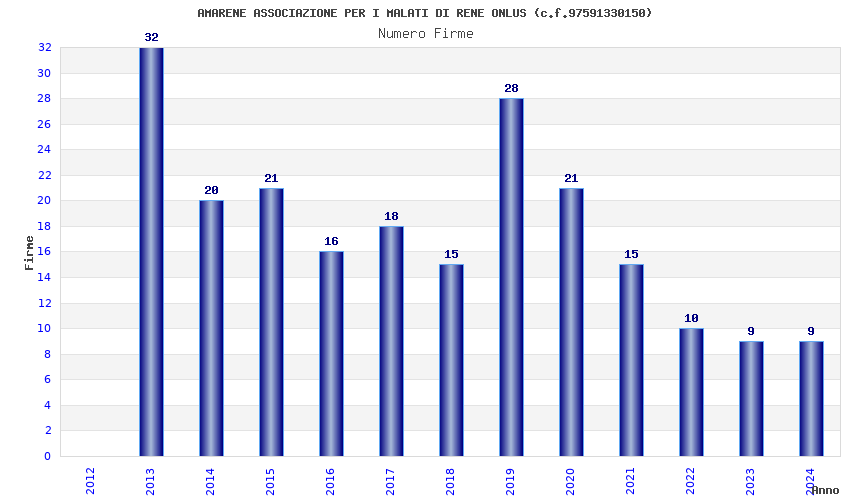 | Anno | Firme | Importi | Media | Naz. | Reg. | Prov. | Comu. |