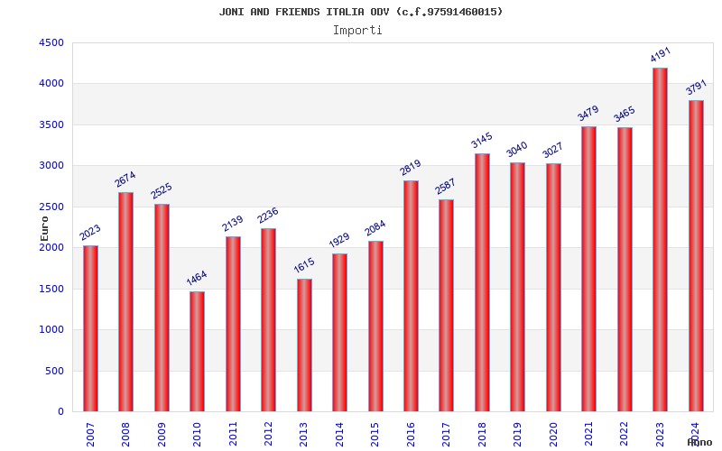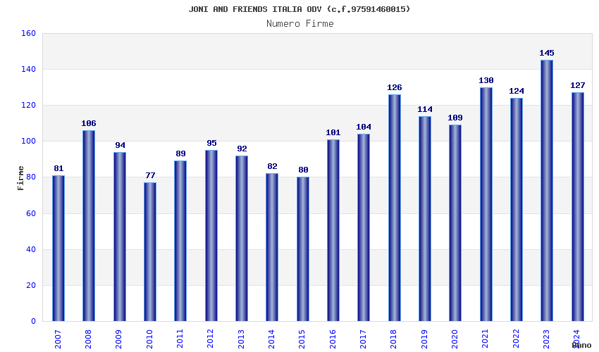 | Anno | Firme | Importi | Media | Naz. | Reg. | Prov. | Comu. |