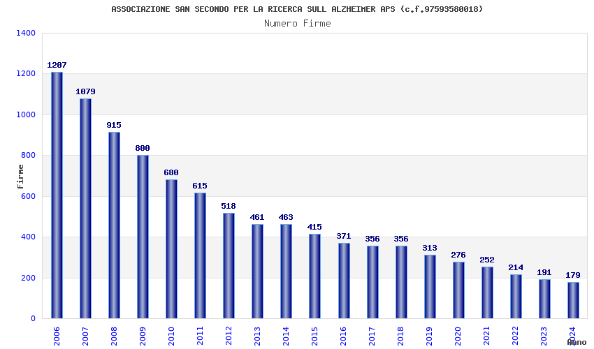 | Anno | Firme | Importi | Media | Naz. | Reg. | Prov. | Comu. |