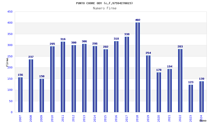 | Anno | Firme | Importi | Media | Naz. | Reg. | Prov. | Comu. |