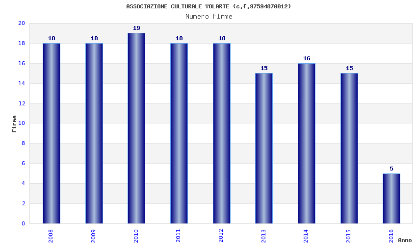 | Anno | Firme | Importi | Media | Naz. | Reg. | Prov. | Comu. |