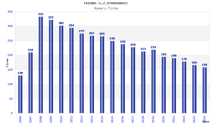 | Anno | Firme | Importi | Media | Naz. | Reg. | Prov. | Comu. |